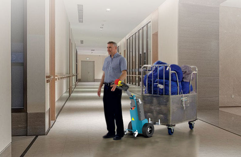 Safe.Move trolleys and equipment safely by maximising forward vision, reducing the risk of collisions and the risk of back and side strains. Simple.No license is required to operate a tug and it is easy to customise attachments to trolleys. Strong.Tow up to 60 tonnes with a single operator. Quiet.Smooth operation with zero emissions and low maintenance.