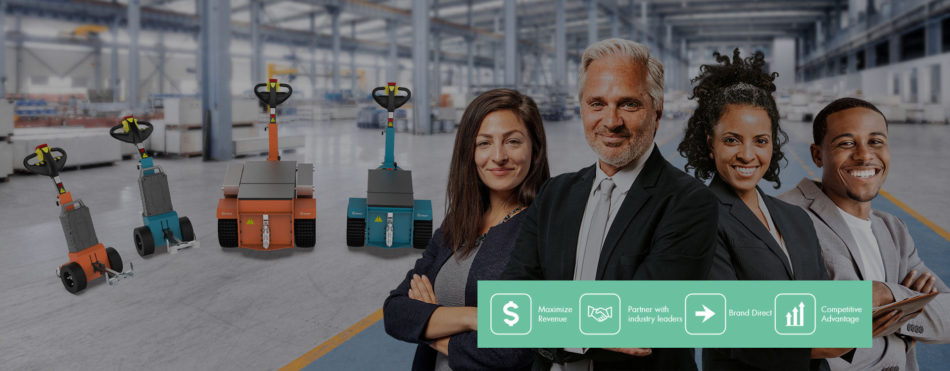 Help your customers to reduce workplace risk, improve safety, drive operational efficiency, and save money by offering GYPOT Electric Tugger Solutions.